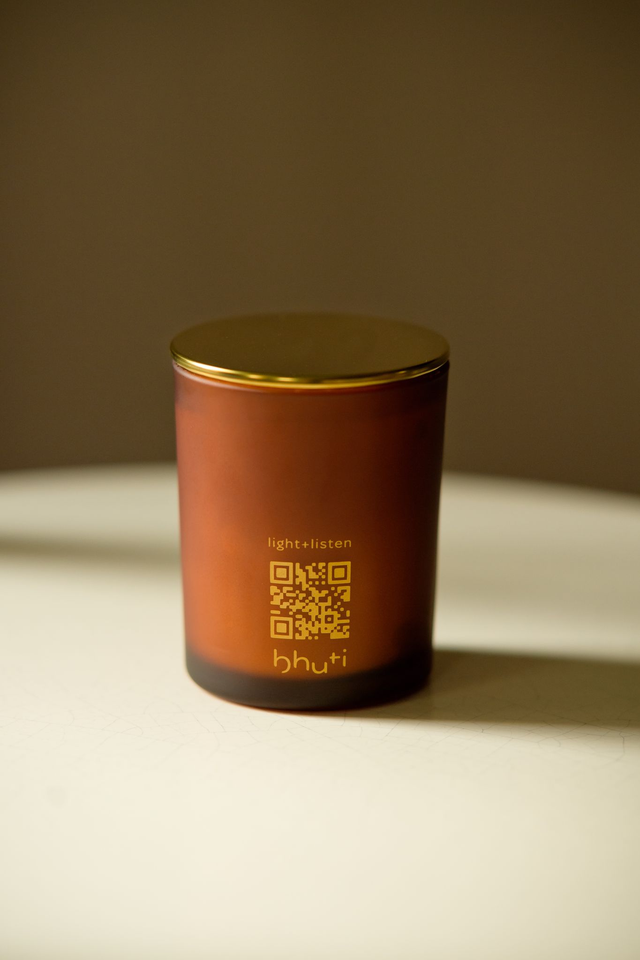 Created with a meditation for you to feel joy, accessed via a qr code which is printed on the candle jar.