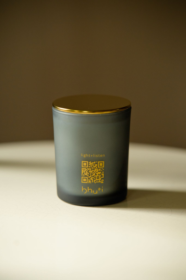 Created with a mediation for you to feel love, accessed via a qr code which is printed on the candle jar.